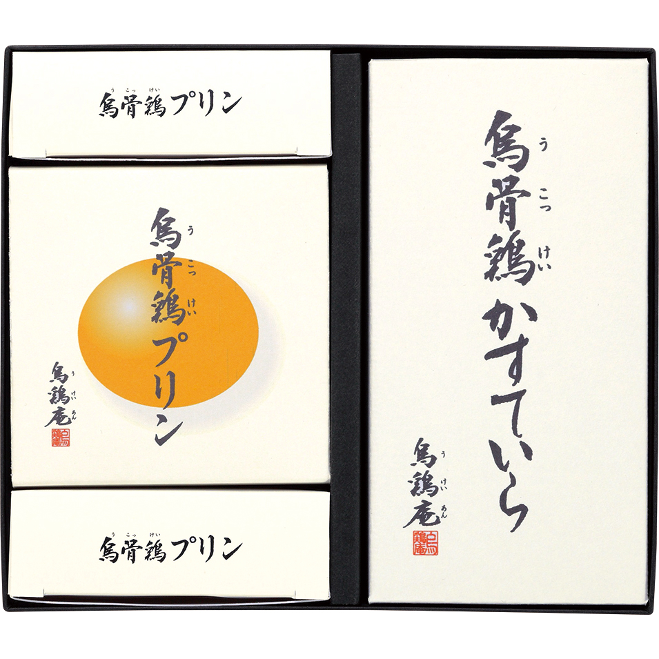 濃厚しっとりの「烏骨鶏かすていら」と、なめらかな口当たりの「烏骨鶏プリン」との詰合せです。